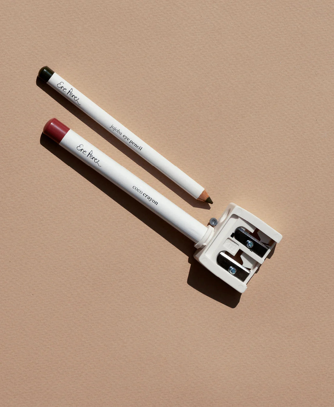 This duo sharpener can sharpen your pencils and crayons like a pro. Use it to sharpen all Ere Perez lip and eye pencils/crayons. Featuring 5-star carbon steel blades and made from biodegradable corn resin, this sharpener is a high-quality eco-friendly version of a beauty bag classic that will keep your liners and color crayons in perfect pointy condition. Made from corn resin, a sustainable alternative to plastic, making it both biodegradable and recyclable. What more could you wish for in a sharpener?!